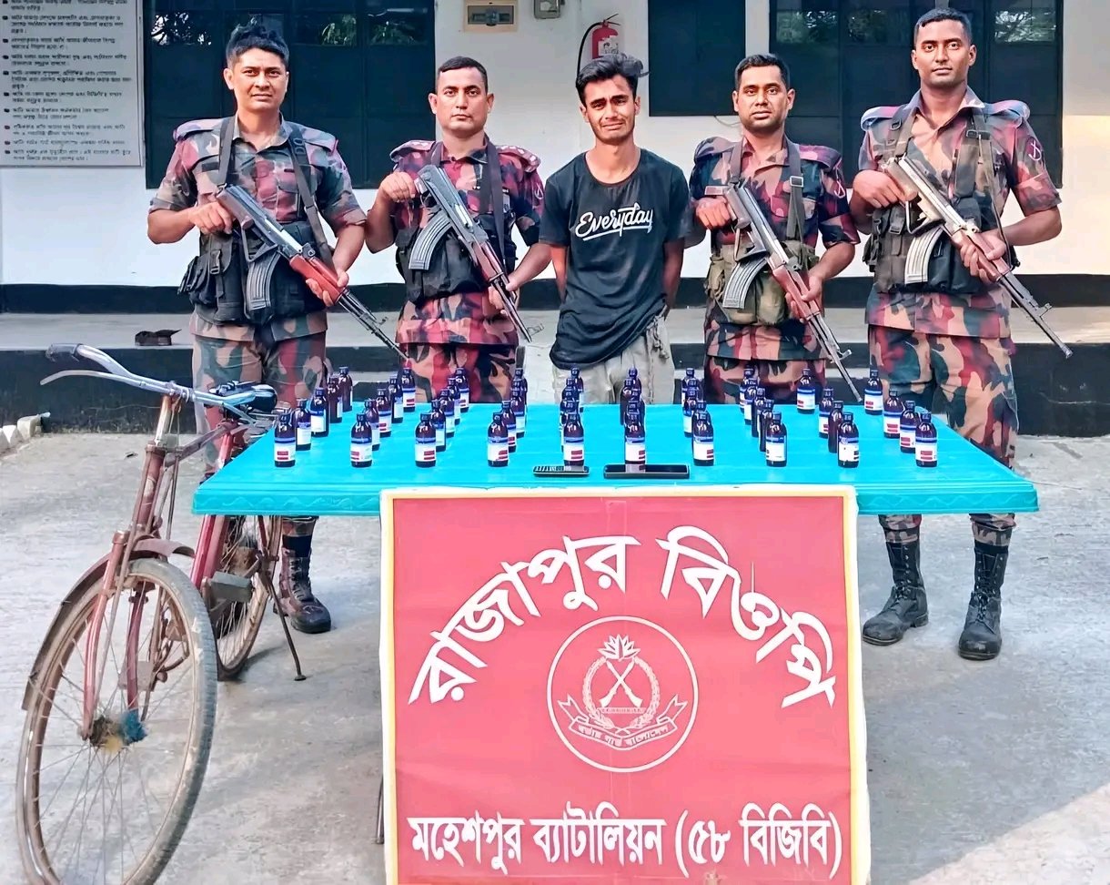 হাবিলদার লতিফুর রহমানের নেতৃত্বে পরিচালিত এ অভিযানে ৪৮ বোতল ভারতীয় নেশাজাতীয় সিরাপ, ২টি মোবাইল ফোন ও ১টি বাইসাইকেলসহ আদিব নামের এক যু্ককে আটক করা হয়। আটক যুবকের বিরুদ্ধে জীবননগর থানায় মামলা দায়ের ও জব্দকৃত আলামতসহ সোপর্দ করা হয়েছে।